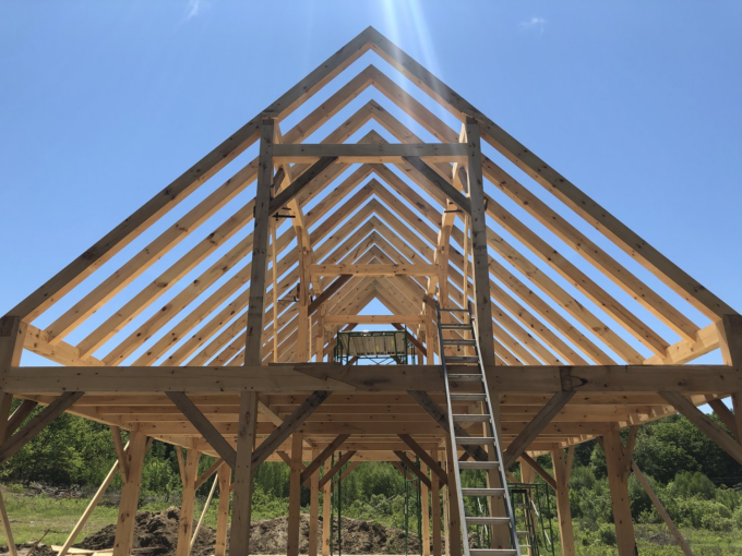 I grew up gardening, hunting, riding horses, and doing a lot with my hands as for practical reasons of course fun. Zane grew up lobstering on the coast of Maine and watching his relatives craft wooden boats with a mixture of modern and traditional techniques. He spent 7 years managing a State Historic site during the summer season enhancing and reinforcing his knowledge and appreciation of history. There is such a wealth of old buildings to learn from, and see the failings in around our state. We are fortunate to use the modern technology of 3d modeling and engineering to save us time and energy in building and planning. Our home is a blend of cost-effective and time efficient processes that also produces something beautiful. We were able to cut the frame using mostly hand tools over the winter so when we broke ground in June of 2019 it was a matter of days until the frame was up and we moved into the house in October 2019 with only the 2 of us doing the work except raising days and the final layer of roof, we also both had other work and jobs during that summer, what a busy year that was.